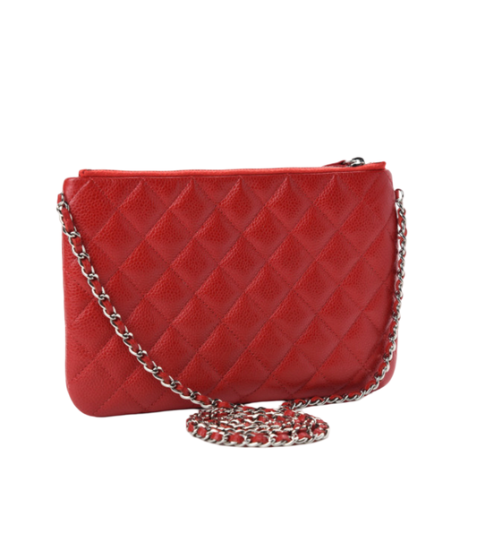 Chanel Red Caviar Front Pocket Interlocking CC Crossbody Bag