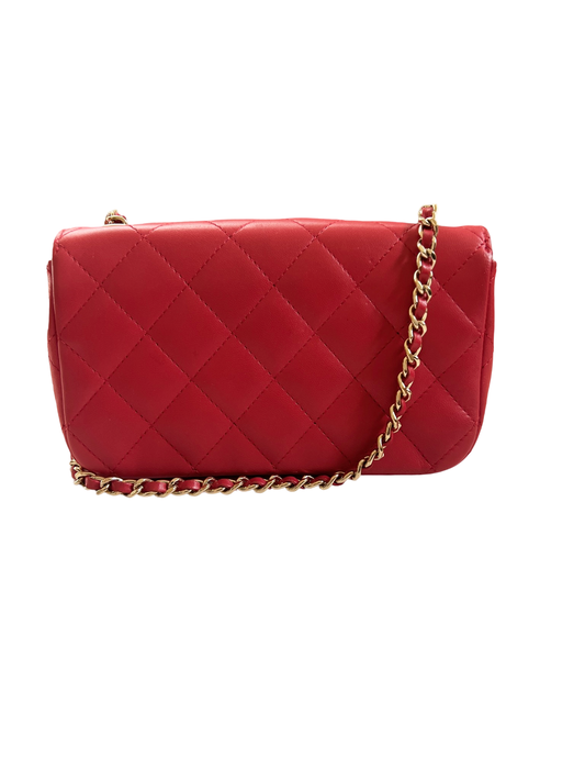Chanel Red Lambskin Peace Sign Extra Mini Flap Bag