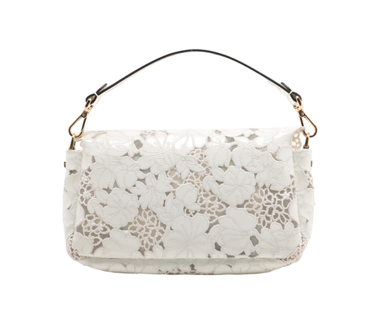Fendi White Lace Laser Cut Baguette Shoulder Bag