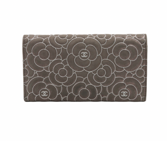 Chanel Metallic Charcoal Gray Camellia Continental Wallet