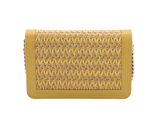 Sold outChanel Yellow Woven Lambskin Boy WOC